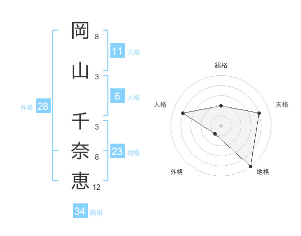 岡山 千奈恵さんの天格は11画の4点!