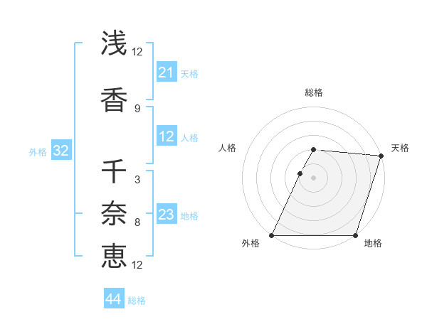 浅香 千奈恵さんを姓名の画数から五運を鑑定
