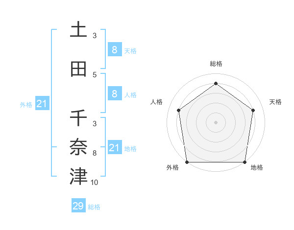 土田 千奈津さんを姓名の画数から五運を鑑定
