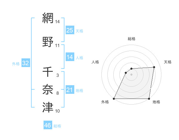 網野 千奈津さんを姓名の画数から五運を鑑定