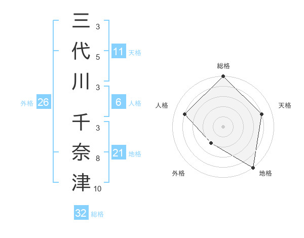 三代川 千奈津さんを姓名の画数から五運を鑑定