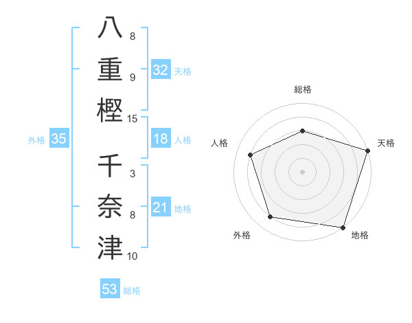 八重樫 千奈津さんを姓名の画数から五運を鑑定