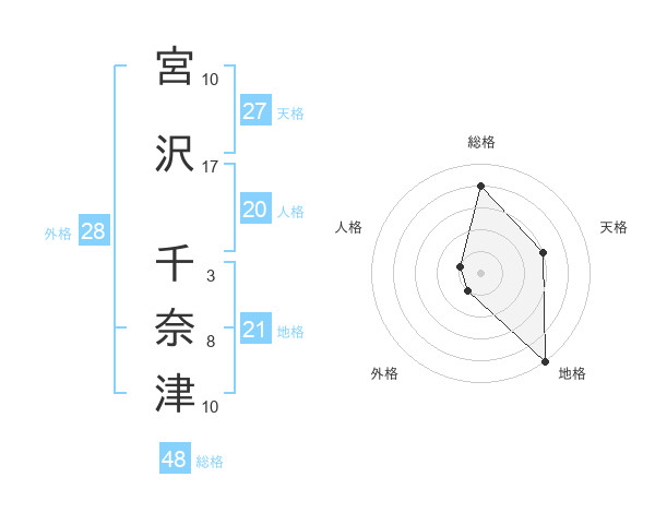 宮沢 千奈津さんを姓名の画数から五運を鑑定