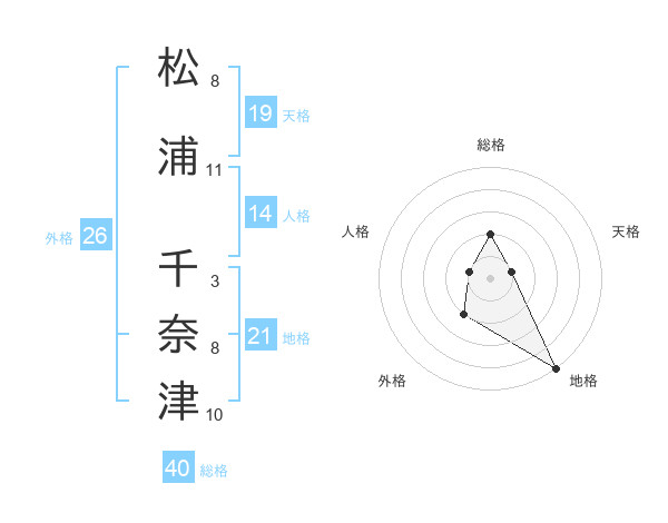 松浦 千奈津さんを姓名の画数から五運を鑑定