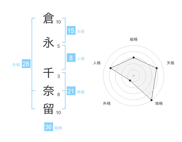 倉永 千奈留さんを姓名の画数から五運を鑑定