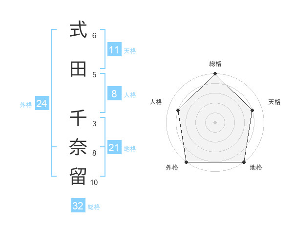 式田 千奈留さんを姓名の画数から五運を鑑定