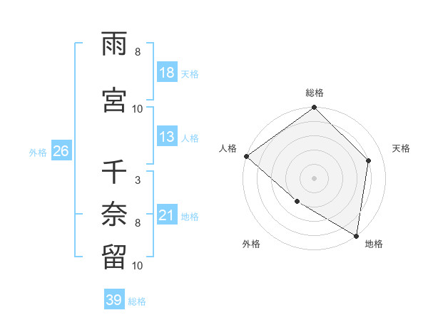 雨宮 千奈留さんを姓名の画数から五運を鑑定