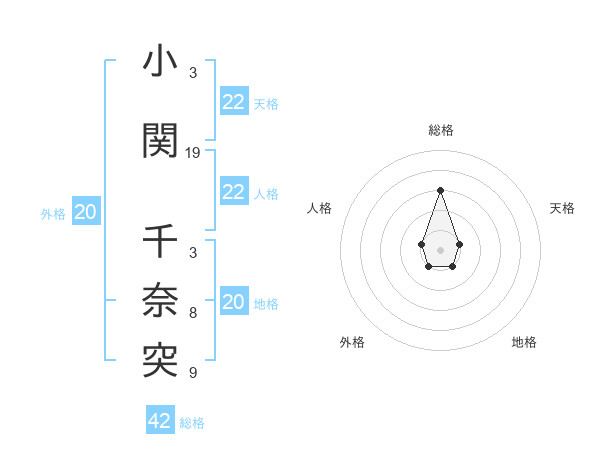 小関 千奈突さんの総格は42画の3点