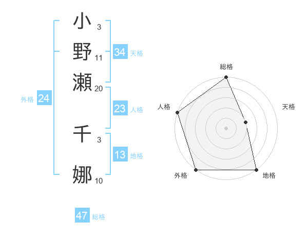小野瀬 千娜さんの総格は47画の5点!