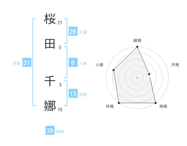 桜田 千娜さんの外格は31画の5点!