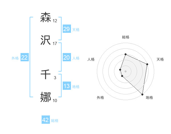 森沢 千娜さんを姓名の画数から五運を鑑定