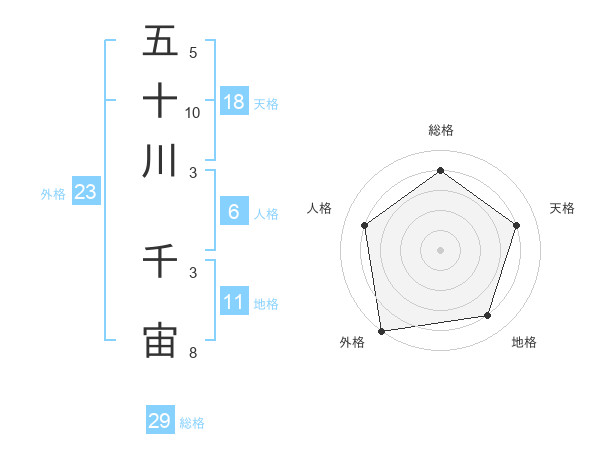 五十川 千宙さんを姓名の画数から五運を鑑定