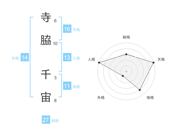 寺脇 千宙さんの天格は16画の5点!