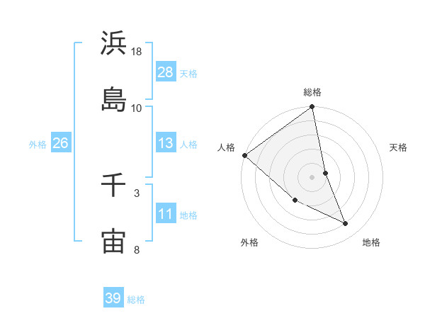 浜島 千宙さんの天格は28画の1点!