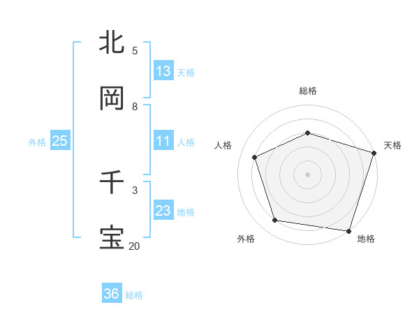 北岡 千宝さんを姓名の画数から五運を鑑定