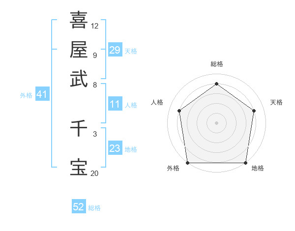 喜屋武 千宝さんを姓名の画数から五運を鑑定