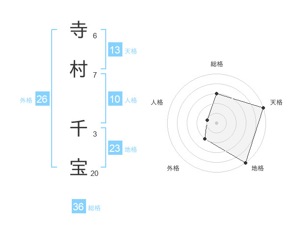 寺村 千宝さんを姓名の画数から五運を鑑定