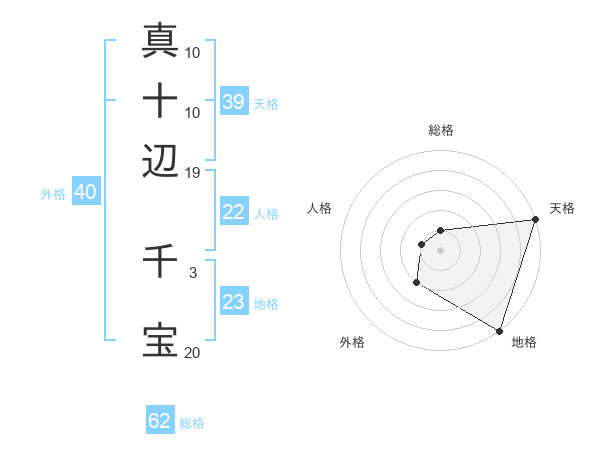 真十辺 千宝さんを姓名の画数から五運を鑑定