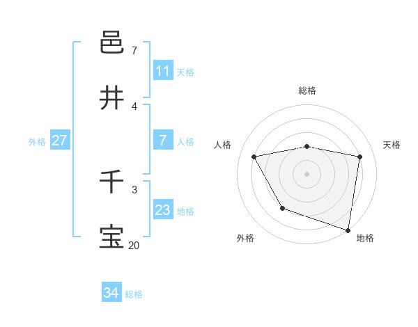 邑井 千宝さんの総格は34画の2点!