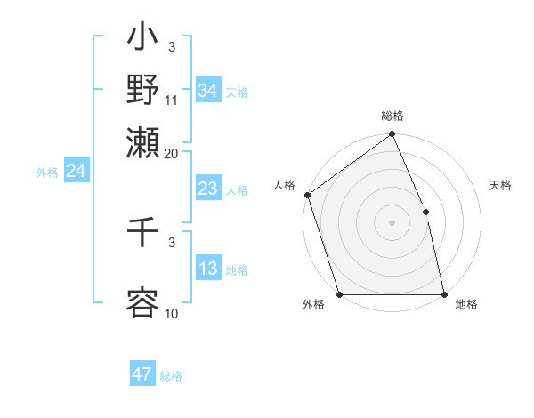 小野瀬 千容さんを姓名の画数から五運を鑑定