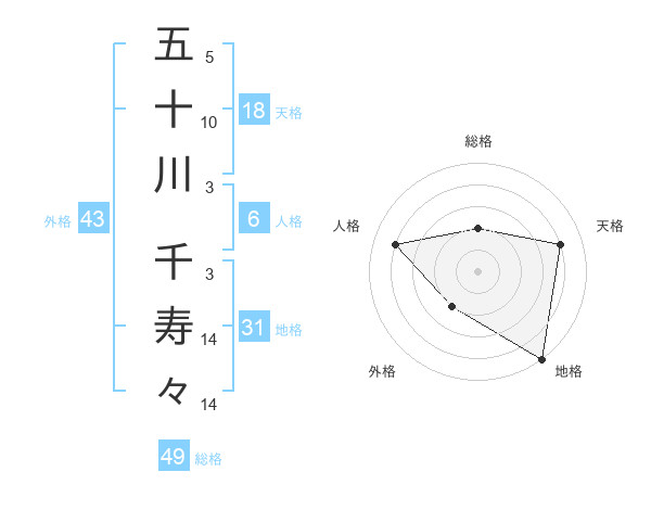 五十川 千寿々さんの総格は49画の2点!