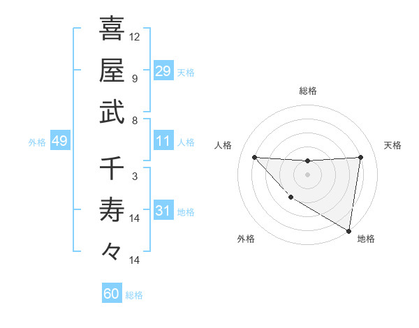 喜屋武 千寿々さんを姓名の画数から五運を鑑定