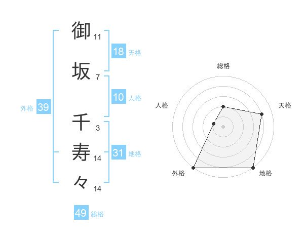 御坂 千寿々さんの外格は39画の5点!