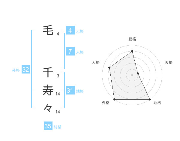 毛 千寿々さんを姓名の画数から五運を鑑定