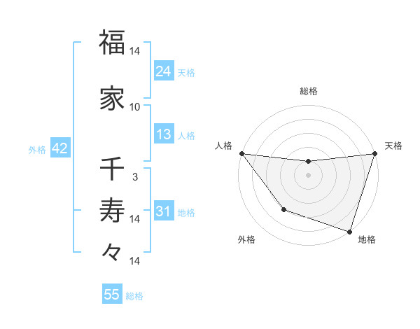 福家 千寿々さんの総格は55画の1点!
