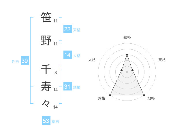 笹野 千寿々さんを姓名の画数から五運を鑑定