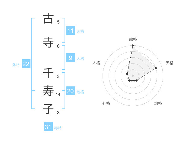 古寺 千寿子さんの総格は31画の5点!