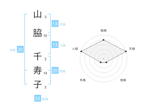 山脇 千寿子さんの総格は33画の4点!