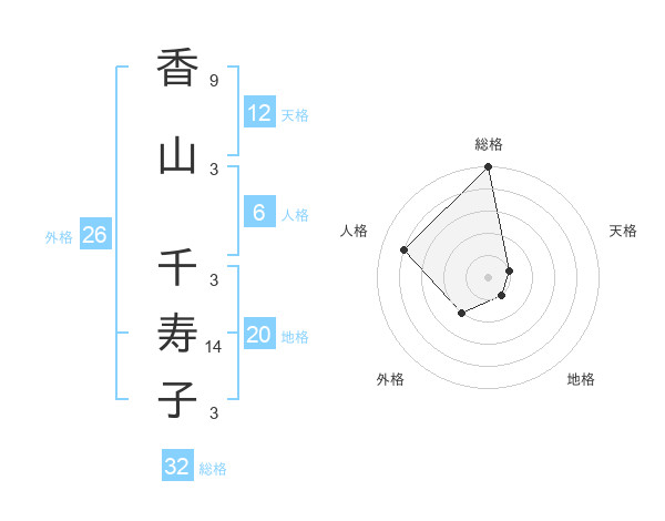 香山 千寿子さんを姓名の画数から五運を鑑定