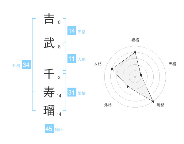 吉武 千寿瑠さんの総格は45画の4点!