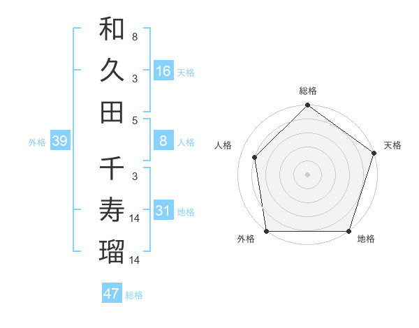 和久田 千寿瑠さんを姓名の画数から五運を鑑定