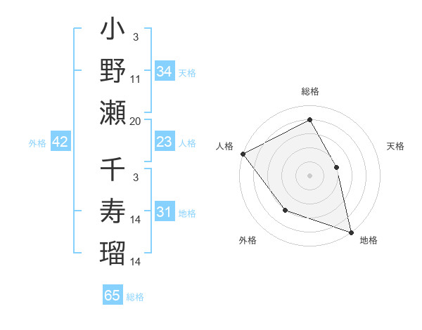 小野瀬 千寿瑠さんの地格は31画の5点!