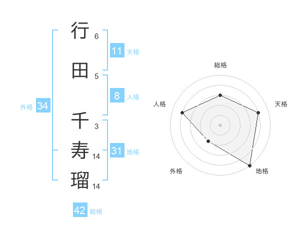 行田 千寿瑠さんの総格は42画の3点!