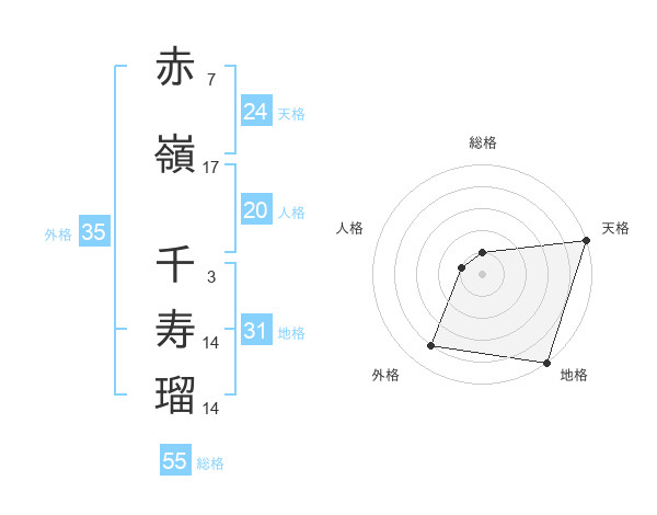 赤嶺 千寿瑠さんの外格は35画の4点!