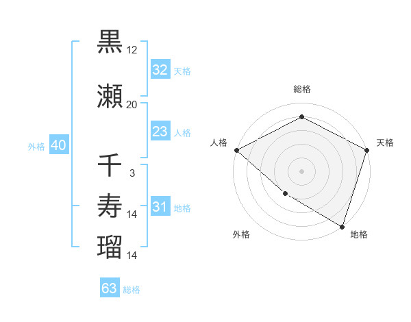 黒瀬 千寿瑠さんの地格は31画の5点!