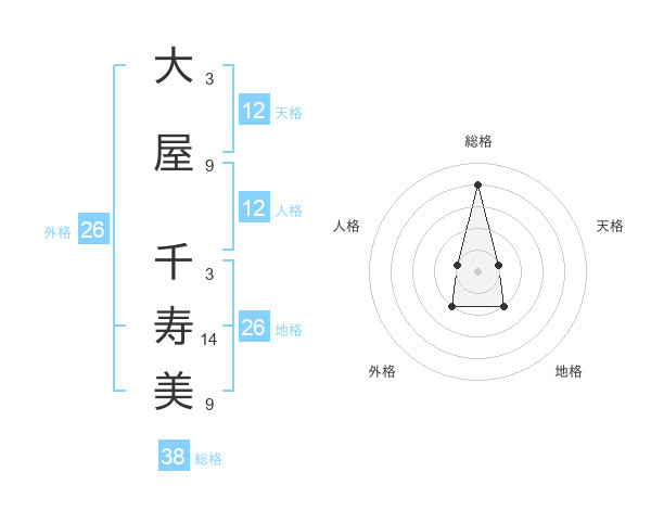 大屋 千寿美さんを姓名の画数から五運を鑑定