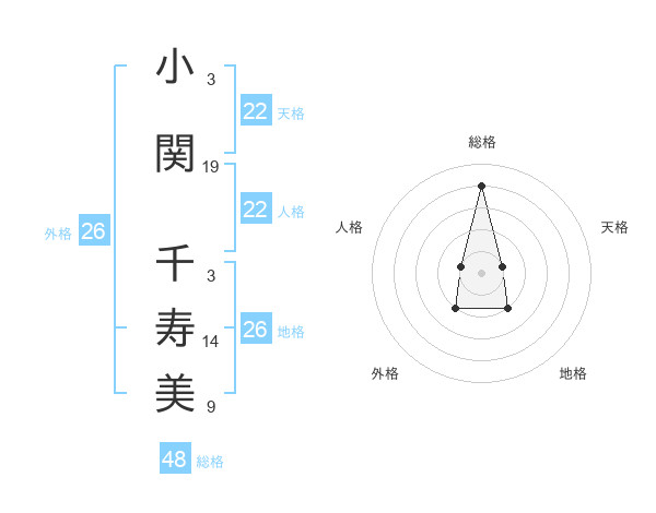 小関 千寿美さんの総格は48画の4点!