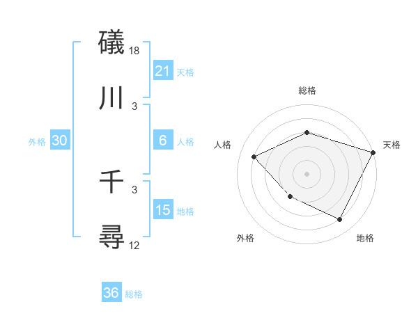 礒川 千尋さんの天格は21画の5点!