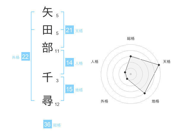 矢田部 千尋さんを姓名の画数から五運を鑑定