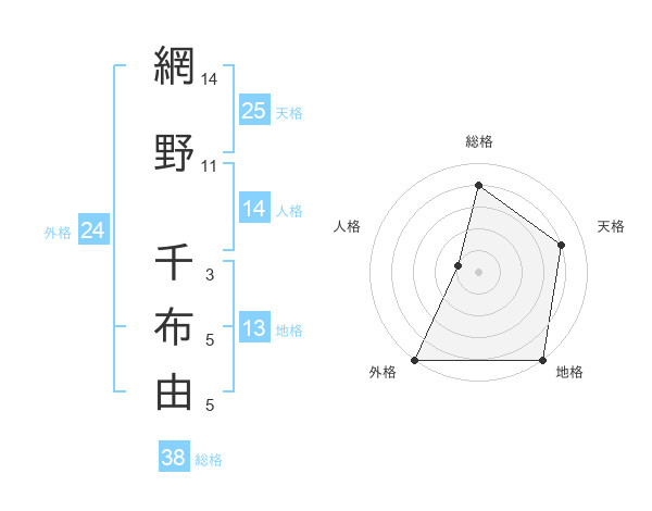 網野 千布由さんの総格は38画の4点!