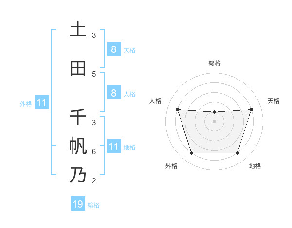 土田 千帆乃さんの外格は11画の4点