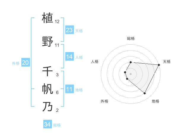 植野 千帆乃さんの天格は23画の5点!