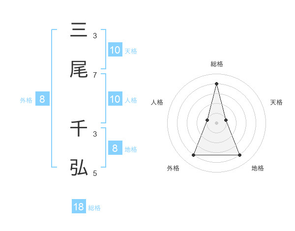 三尾 千弘さんを姓名の画数から五運を鑑定