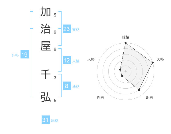 加治屋 千弘さんを姓名の画数から五運を鑑定