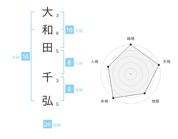 大和田 千弘さんの天格は16画の5点!
