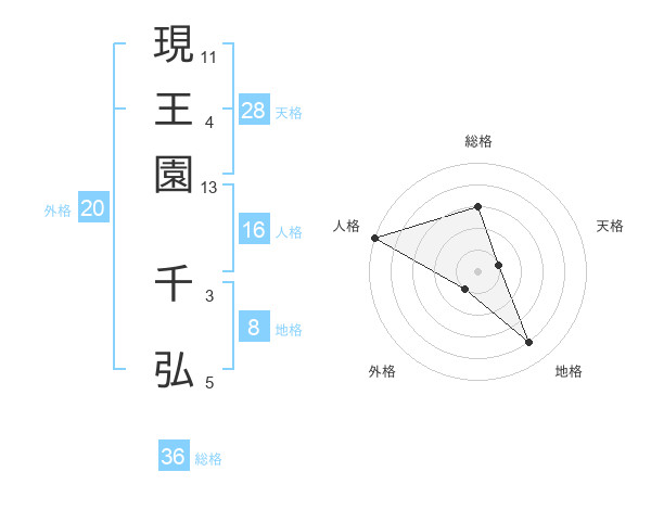 現王園 千弘さんを姓名の画数から五運を鑑定